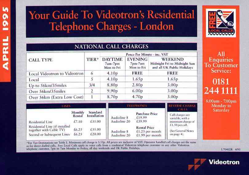 Below are scans, contributed by several people, of summaries of past Videotron tariffs.