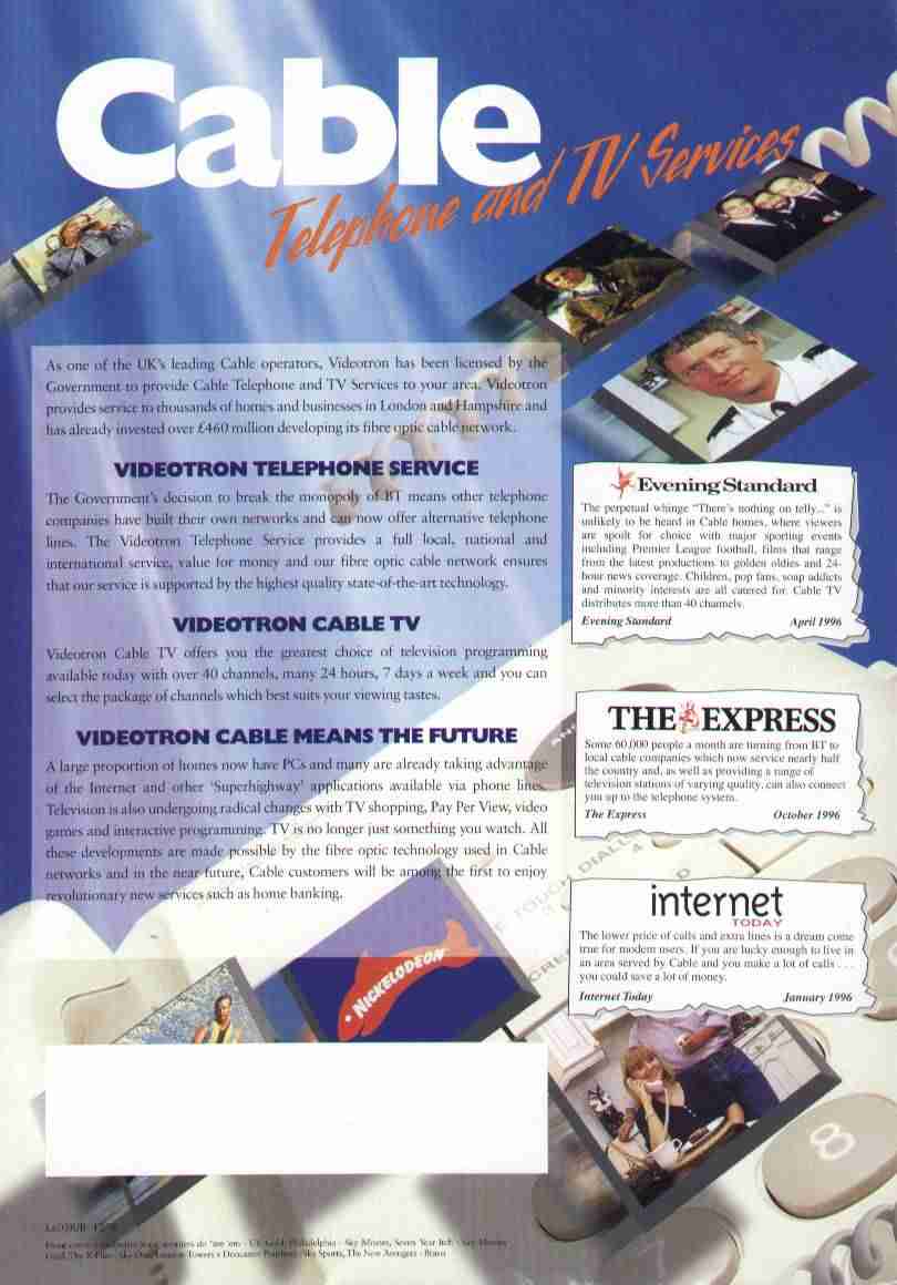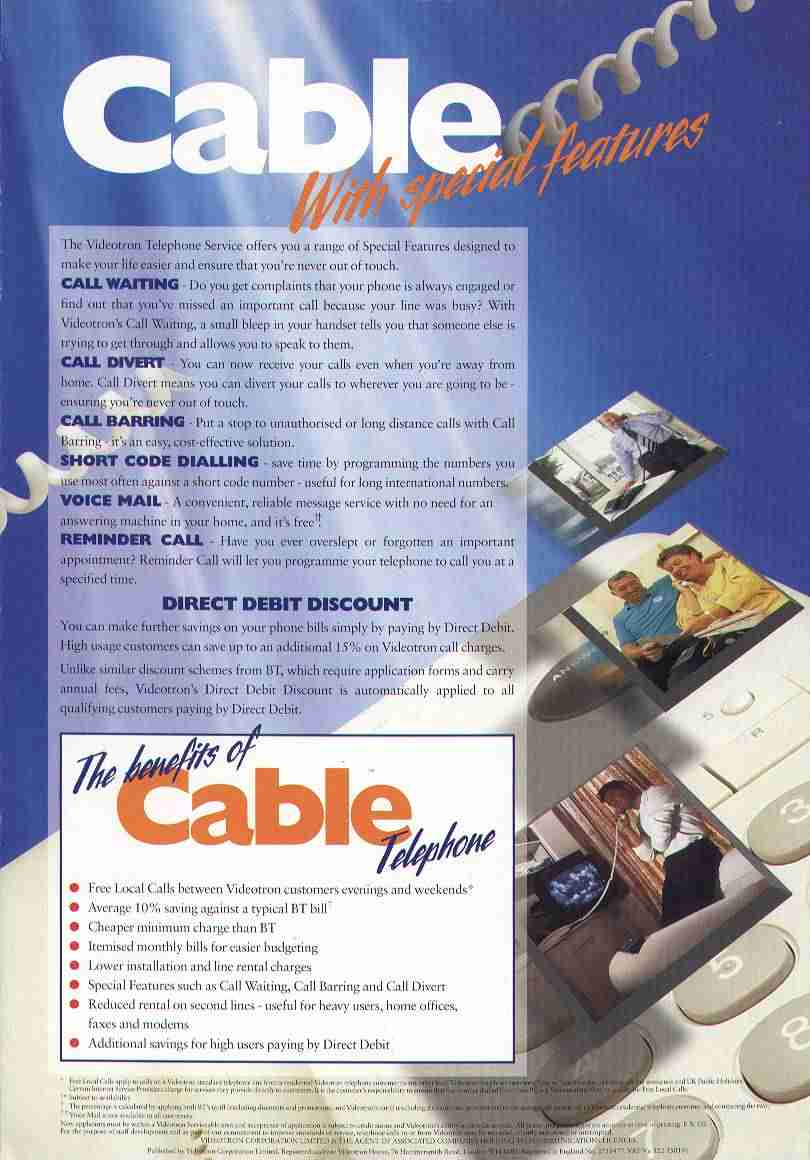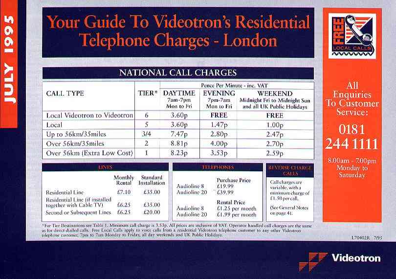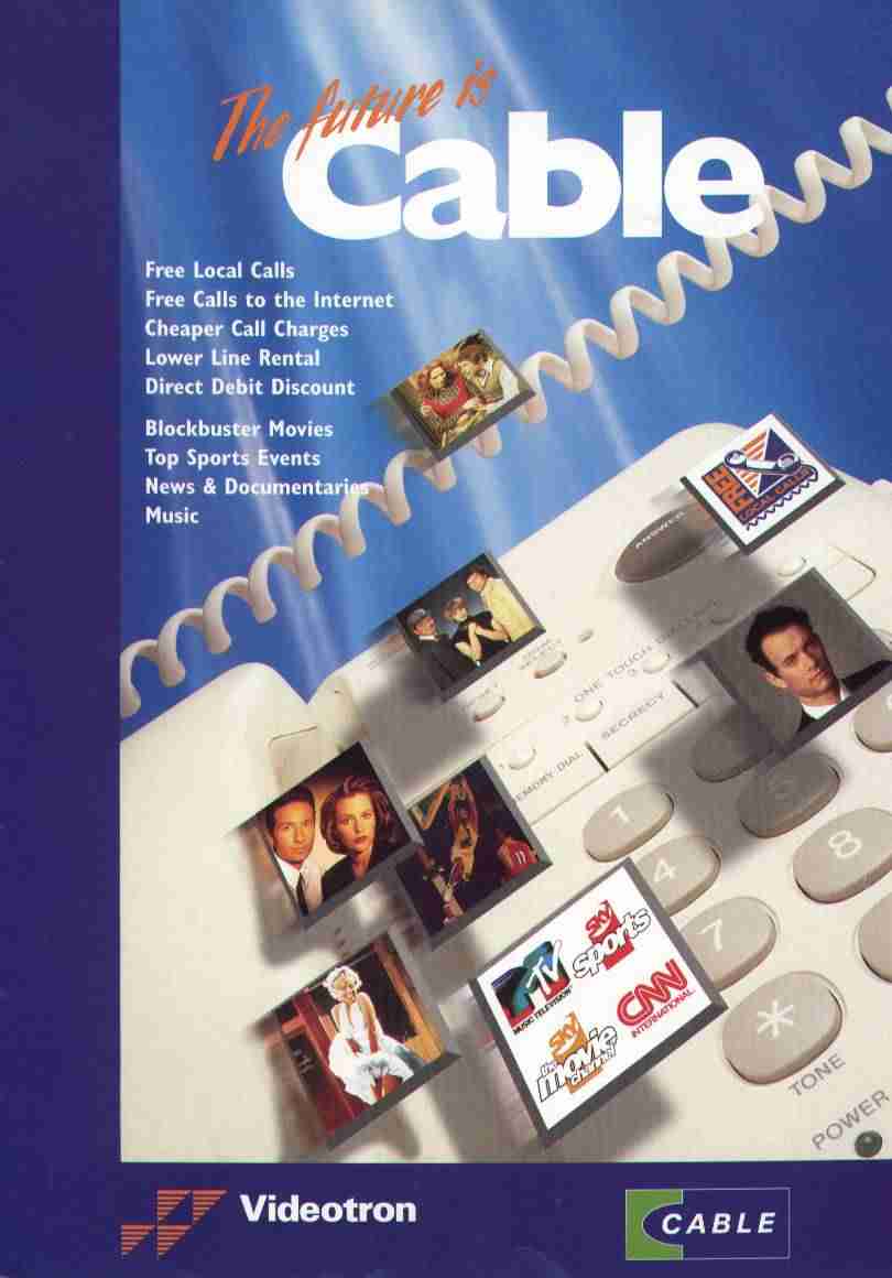 There are also scans, contributed by David Barton, of the five pages (1 2 3 4 5, each about 50KB) of The Internet, Videotron's brochure supplied to all customers from the end of 1995 until June 1997. Note the emphasis everywhere on 'free' calls.