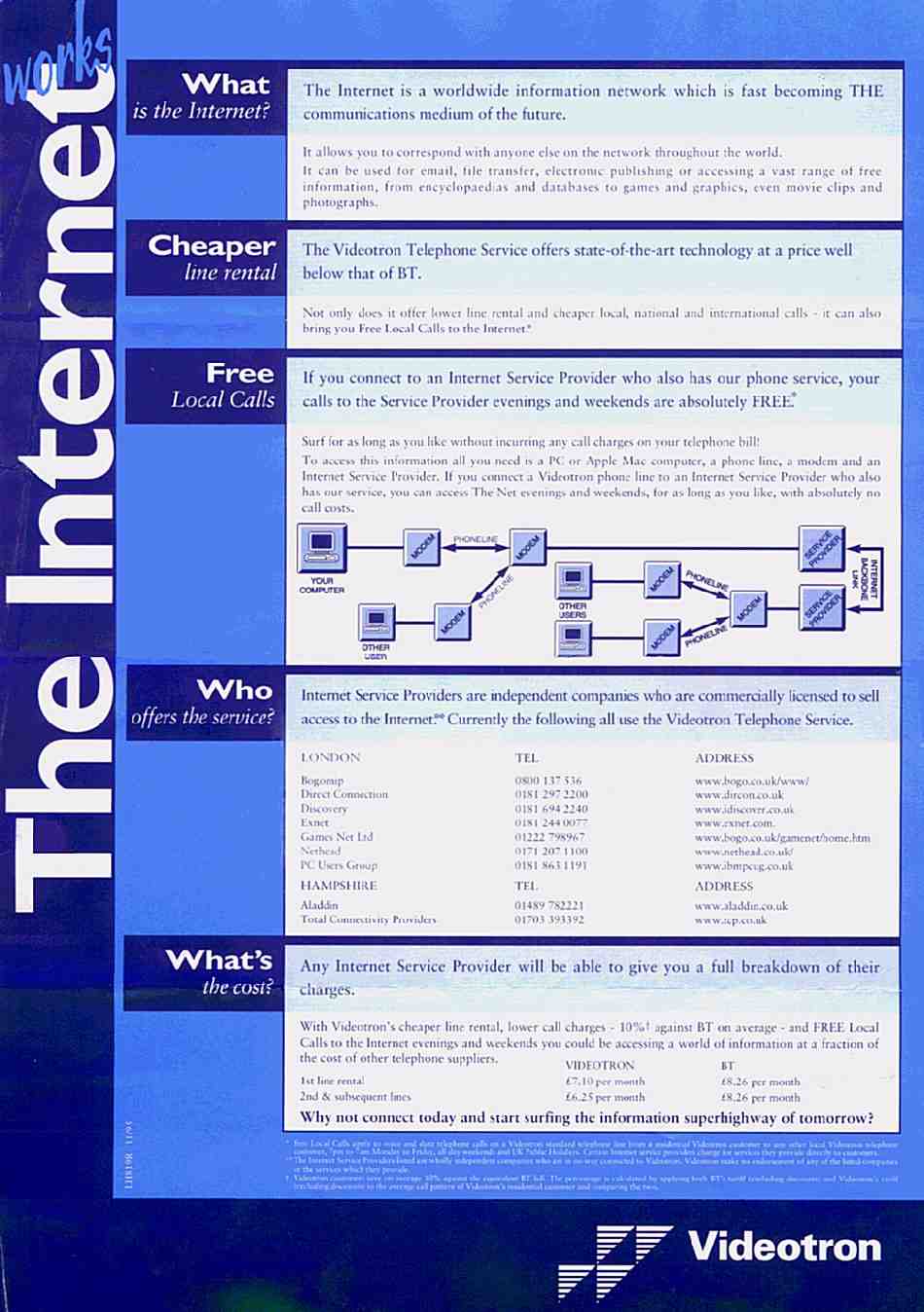 By popular demand, the list of Internet Service Providers with Videotron lines is back. As you will see, there have been changes in the two and a half years since the original Videotron leaflet was produced.